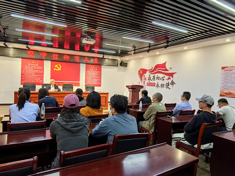 参观结束后,姚华亮为全体党员上了一堂生动的党课。他结合自己投身军营,在部队锻炼和成长的故事,讲述了一名军人对党对祖国的赤子之心,特别是退休后创办家庭红色文化展示馆的经历、感悟以及在传承红色文化方面的做法和体会。