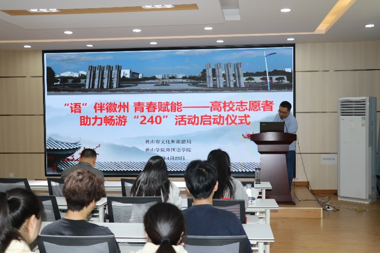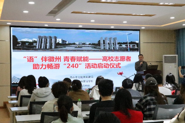 4月24日下午,“语”伴徽州青春赋能——高校志愿者助力畅游“240”活动启动仪式在永利yl23411集团徽州文化国际传播中心报告厅正式举行。永利yl23411集团院长洪常春、黄山市文旅局调研员方劲松、人事科长刘国进出席了此次启动仪式,小语种国际商旅策划管理的老师与学生志愿者也参与了活动。