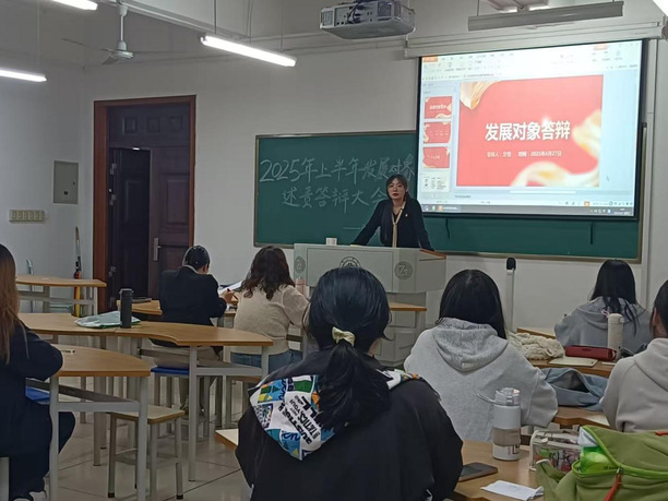 为保证学生党员发展质量,加强对发展对象和预备党员的培养、监督与考察,4月27日下午,永利yl23411集团学生第三党支部在逸夫综合楼5206-2教室开展2025年上半年学生党员发展公开述责答辩大会。支部全体党员及入党积极分子参加。会议由学生第三党支部书记秦雪燕主持。