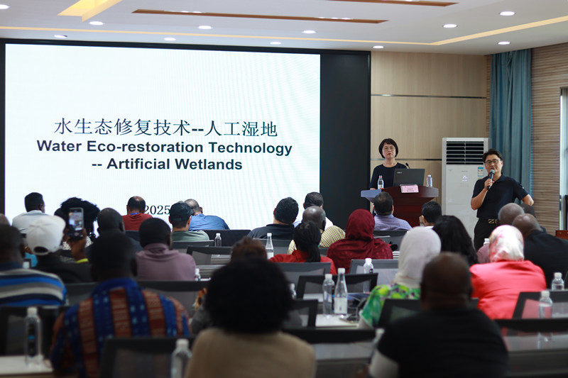 讲座互动环节气氛热烈,学员们踊跃提问。埃及的学员MARIAM SAFWAT AZMY HENNAWY博士介绍了该技术在沿海的应用情况,来自冈比亚的LAMIN FOFANA先生深受启发,就该技术处理的污水效果进行了提问;而来自南苏丹的GIVEN NDLOYU则关注发展中国家如何利用人工湿地技术。钱丽萍对此逐一耐心解答,受到学员们的高度好评。