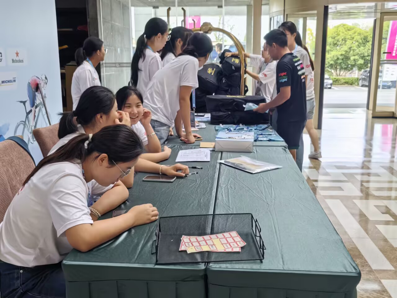 9月16日傍晚,志愿者们即刻投入实战。从高效分装近2000份运动员餐包,到在各国车队抵达时提供精准的翻译与接待服务,他们以细致入微的工作、扎实的语言功底,用流利的外语和真诚的微笑,为远道而来的国际友人驱散旅途疲惫,赢得了广泛赞誉。