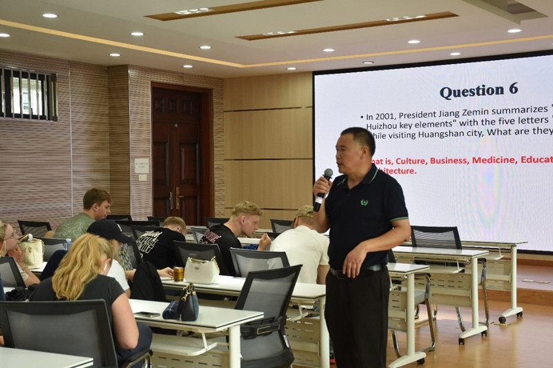 当日下午3点,在我校逸夫楼徽州文化国际传播中心,王毅聪老师为丹麦学生简略地讲解了中国的基本国情与传统文化。