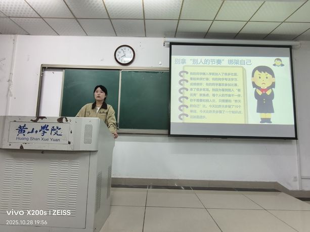 丁雨倩学姐带来“大一新生入学适应指南”经验分享。她强调了“早规划、多实践”的重要性,鼓励同学们积极参与志愿服务、暑期实践等活动拓展视野,并建议大家尽早明确考研、考公或就业目标,合理分配时间,平衡好学习与生活节奏。