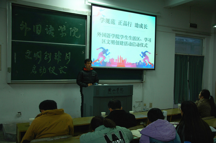 黄立华为本次活动致辞,他对于此次文明创建活动的成功启动表示祝贺,希望各班班干能起到带头作用,从身边小事做起,以身作则,以提高学生生活和学习质量为切入点,把寝室、教室文明创建和学风建设有机结合起来,为同学们营造一个良好的成长、成才环境。