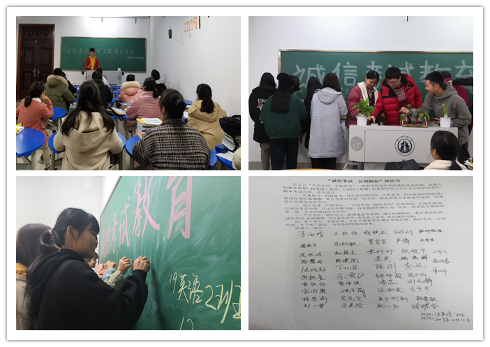 活动形式多样,内容丰富。有的团支部组织学习《学生手册》、有的支部开展“诚信考试之我见”的讨论分享会,有的支部组织开展诚信考试宣誓活动,有的支部组织诚信考试承诺签名活动。17日语班李乐园说:“期末考试在即,我们应自觉遵守作息制度,合理安排复习时间。做到早睡早起、规律生活、稳扎稳打、循序渐进,以饱满的精神和昂扬的斗志做好期末考试准备。”19英语4班张纪龙说:“诚信是做人之本。我们要从自己做起,从现在做起,充分利用复习时间,系统复习各门课程,坚决杜绝懒散慵懒,端正态度对待每一场考试,诚信的备考。”