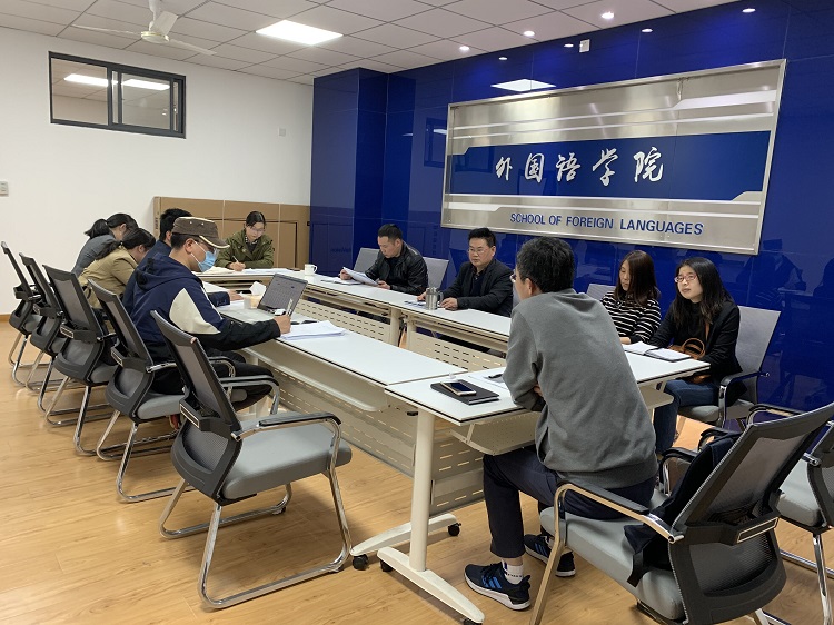会上,洪常春首先强调了新冠肺炎疫情当前,毕业论文指导工作的严峻性与紧迫性,同时也肯定了2020届本科毕业论文工作所取得的阶段性成果。接下来,英语教研室负责人王任傅博士针对因疫情原因论文指导、评阅及答辩工作的调整及线上答辩环节安排和与会人员进行了沟通交流。他从教师学术发展和学生成长成才的角度,分析了毕业论文工作对人才培养的重要性,希望指导教师要认真负责,严格按照有关规范进行指导;他还就今后毕业论文工作改革与其他大学英语教研室(副)主任进行了磋商。最后,院长黄先进指出:毕业论文作为外语复合应用型人才培养的重要抓手,不能因疫情影响而降低标准,指导教师要抓好毕业论文进度与质量,全力保障该项工作顺利完成。