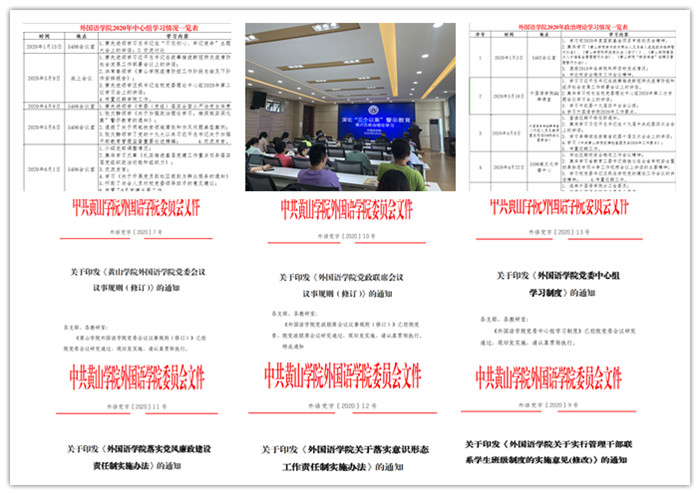 断优化党支部设置,依托教研室和学生专业方向等建立3个教工支部及3个学生支部并不断加强对师生党支部的指导;积极落实班子成员结合分工联系教师、学生党支部制度,学院党委坚持政治立党、思想建党,立足学科特色及师生发展需求,实现了党员教育全覆盖,形成学习教育常态化制度;通过党建“支部好案例、书记好党课、党员好故事”的“三个好”活动,树立支部品牌、强化党员教育,树立先进典型。教工一支部与学院“向日葵”英语辅导站长期共建,师生共同谱写志愿服务篇章;教工二支部成立“暖心小分队”,为学院困难教师定期送温暖;教工三支部与中共黄山市歙州阳产土楼文化旅游发展有限公司党支部签订党建合作协议,发挥专业优势服务地方发展。