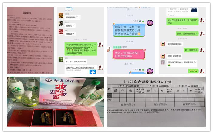7月6日下午,党员教师们冒雨将装满毕业纪念礼品、消毒洗手液、防疫包、无糖饮料的爱心礼包送进寝室。与此同时,该院结合疫情防控相关知识,细心整理学生返校前、中、后的个人防护和注意事项,制成温馨提示并配有精致的欢迎卡,让毕业生返校后感受到“家”的温暖。还有教师党员自愿用私家车为学生搬运行李。温暖的关怀、暖心的服务让返校学生倍感贴心。