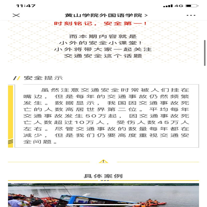 其次,该院通过微信公众号发布暑期安全主题教育系列推文。该院将暑期安全教育知识分为出行和交通安全、防溺水防中暑安全、防中毒饮食安全、防疫安全及远离黄赌毒和网络安全五部分普及知识连续放送;同时,通过QQ平台发布防汛防洪、日常防疫等安全知识,增强学生安全意识,提高避险能力。19英语专业董晓玉表示,作为大学生,应当坚决抵制网络上的不良信息,加强个人的安全意识,谨防诈骗。