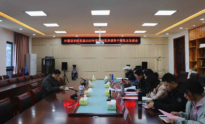 为深入学习贯彻习近平新时代中国特色社会主义思想和党的十九届五中全会精神,根据校党委《关于认真开好2020年度处级党员领导干部民主生活会的通知》精神要求和工作安排,1月21日上午,外国语学院党委在逸夫综合楼5402会议室召开2020年度处级党员领导干部民主生活会。校党委委员、副校长刘英旺到会指导,该院党政领导、院党委委员、科级干部和支部书记参加会议。会议由该院党委书记、院长黄先进主持。