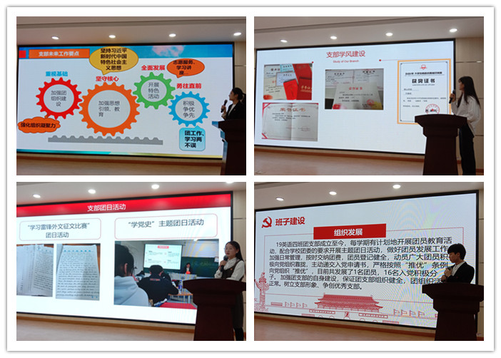活动伊始,各团支部代表依次上台进行PPT汇报,汇报内容包括支部班子建设、支部特色活动、支部学风建设、出勤卫生情况、支部获奖情况、青年大学习观看情况等方面。各支部向大家展示了各具特色、风格各异的支部风采。答辩环节上,评委就支部建设及支部特色进行提问,并指出了各支部在团组织建设上存在的优点与不足,同时就日后团组织建设活动的开展提出了意见和建议。经现场评委打分,最终,19英语1班团支部和20英语2班团支部荣获“永利yl23411集团2020年度活力团支部”。