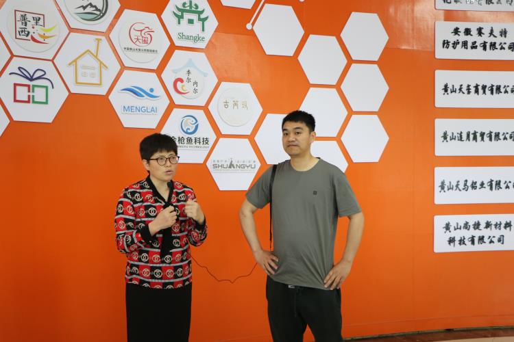 首先,同学们参观了徽州区跨境电商产业园,杨明和徽州区商务局局长詹秋琴分别对园区做了详细介绍,并鼓励同学们抓住机遇,积极创业。