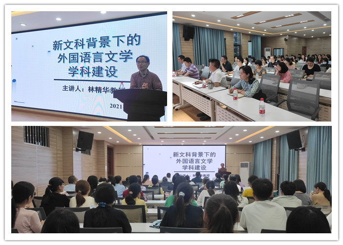 为响应教育部号召,传播新文科建设思想,6月21日晚上,永利yl23411集团在逸夫楼5306教室举办以“新文科背景下的外国语言文学学科建设”为主题的学术讲座,主讲人为首都师范大学林精华教授。该院党政领导班子出席讲座,学院副院长王任傅主持讲座。学院100余名师生参与此次讲座。