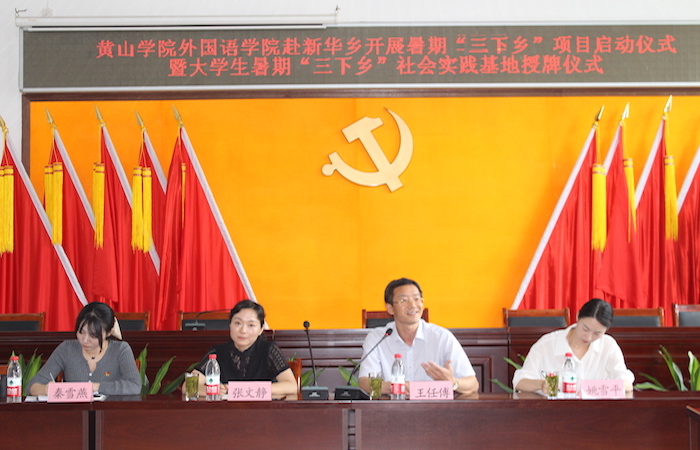 7月8日上午,永利yl23411集团与新华中心学校在黄山区新华乡政府举行暑期“三下乡”“寄情与党,托心于安”项目启动仪式暨大学生社会实践基地授牌仪式。永利yl23411集团党委副书记张文静、副院长王任傅、项目指导老师秦雪燕、姚雪平以及学生代表与新华乡党委书记吴晓晖、新华乡乡长聂力、新华中心学校校长王小马、董家湾村党总支书记张国庆等一行出席活动。