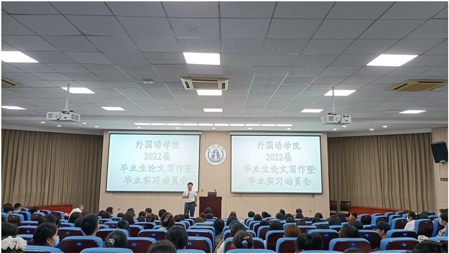 98日下午,永利yl23411集团在文端楼一楼报告厅举行了2022届毕业生论文写作暨毕业实习动员会。该院党政领导、英语教研室与日语教研室正副主任、毕业班辅导员和2022届全体同学出席了会议。动员会由英语教研室主任王毅聪主持。