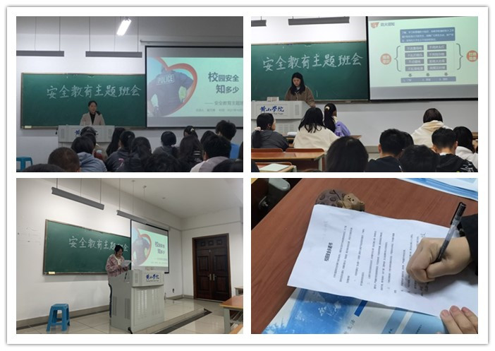 解方婷从防疫、防盗、防骗、人身安全、水电安全以及交通安全等五个方面介绍了相关安全知识,让学生们认识到“隐患处处有,安全时时记”,了解到在遇到危险时如何保护自己。随后,五位学生代表也上台分享经历和心得,以自身经历让同学们进一步认识到安全的重要性。21日语1班班长钱程宣读“守护平安校园”倡议书,全体同学在倡议书上签字。