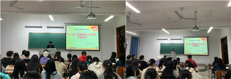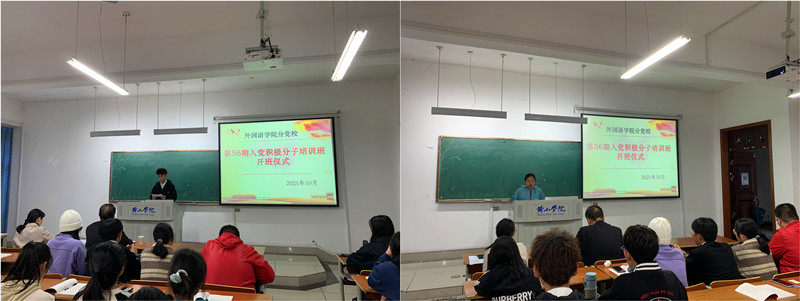 伴随着雄壮的国歌,开班仪式拉开了序幕。张文静宣读了《关于做好第56期入党积极分子培训班工作的通知》,介绍了入党积极分子培训班组织情况、培训内容及教学管理要求。第55期学员代表李敏分享了学习心得体会,56期学员代表刘东波作表态发言。