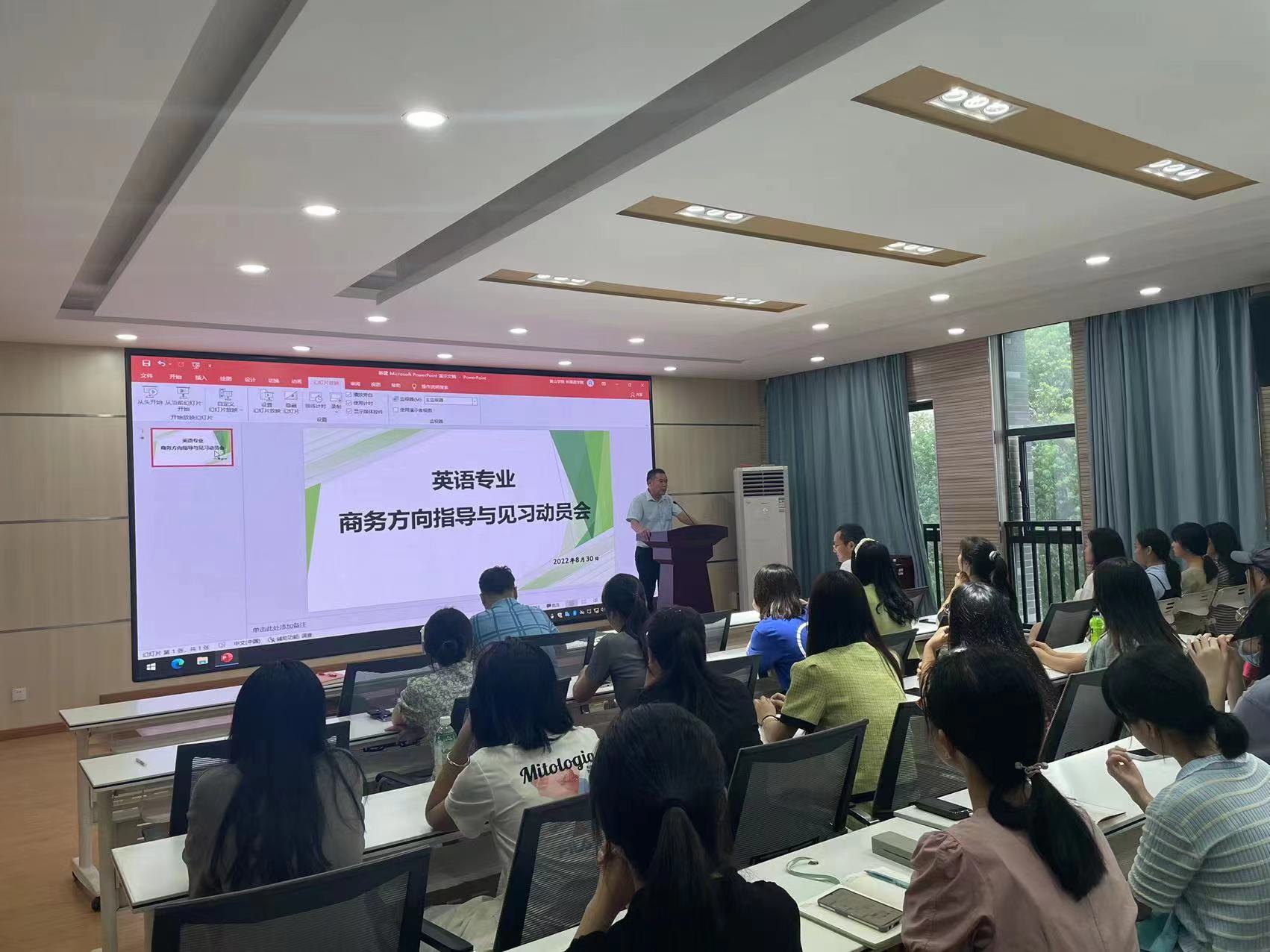 8月30日下午,永利yl23411集团在5306徽文化传播中心报告厅举行2020级英语专业商务方向指导与见习动员会。院长洪常春、副院长王任傅、英语专业教研室主任王毅聪、2020级英语专业商务方向班主任杨珊及该方向全体同学参加会议,会议由王任傅主持。