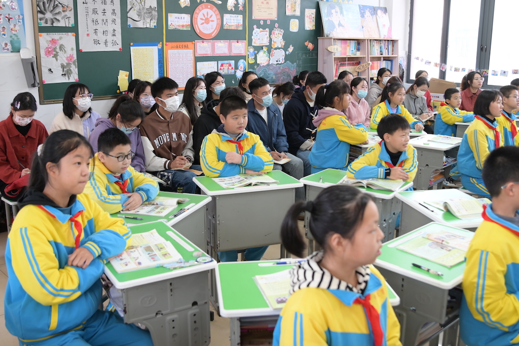 随后同学们分别进入小学、初中英语课堂,认真听课,观摩学习。同学们通过课堂观察,对英语课型(听说课、复习课、阅写课等)、教学模式、教学目标与重难点、教师提问与反馈、板书设计、作业布置等有了更直观的理解以及启发与思考;更加明确了教师“教什么”、学生“学什么”。