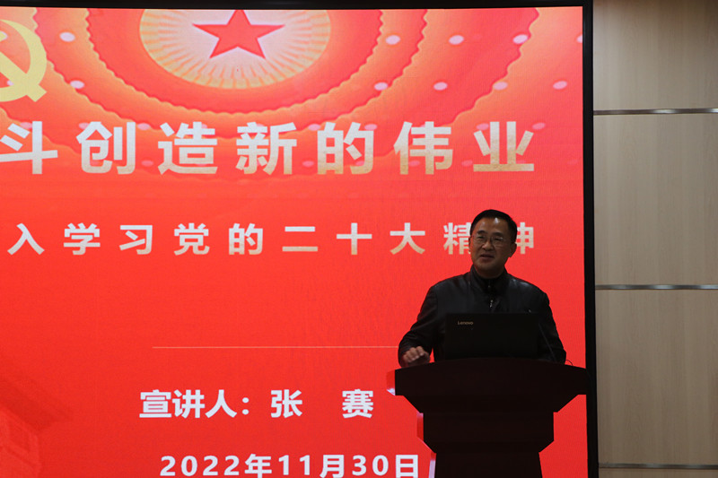 报告会上,张赛从“深刻领会党的二十大的重大意义”“准确把握党的二十大精神实质”“心往一处想、劲往一处使、砥砺实干、锐意进取”等三个方面重点解读了党的二十大报告的深刻内涵,并通过详实的数据和事例回顾了过去5年党和国家事业取得的举世瞩目的重大成就以及新时代10年的伟大变革及其里程碑意义。