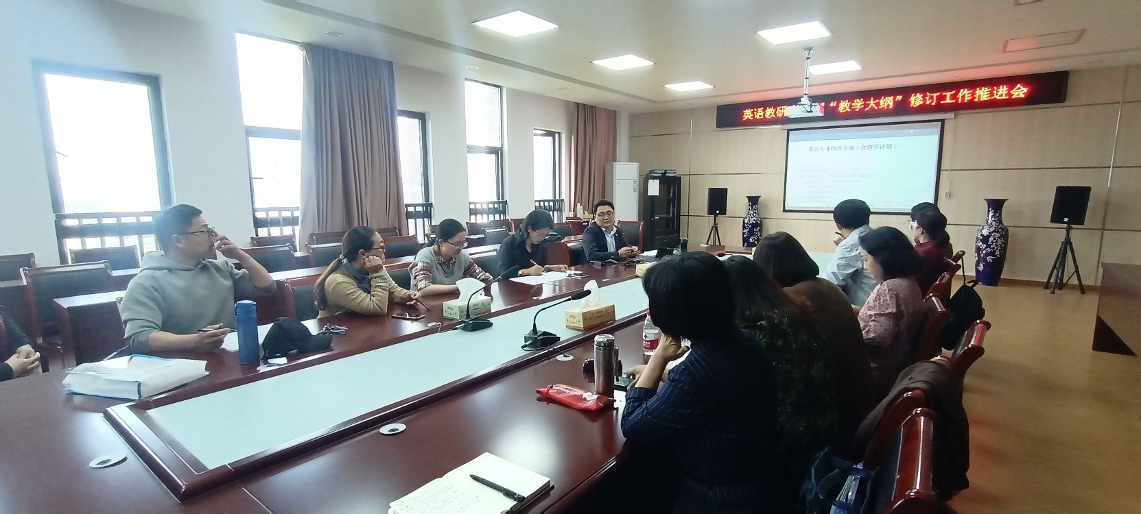 4月12日,永利yl23411集团英语教研室在逸夫综合楼5402会议室召开课程教学大纲修订工作推进会。永利yl23411集团学院院长洪常春、副院长王任傅、英语教研室主任王毅聪及英语专业全体专任教师参加推进会。