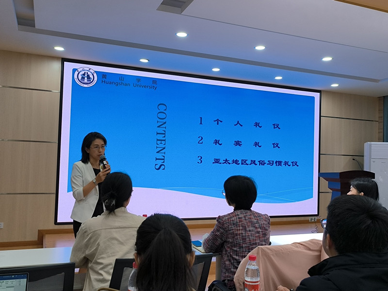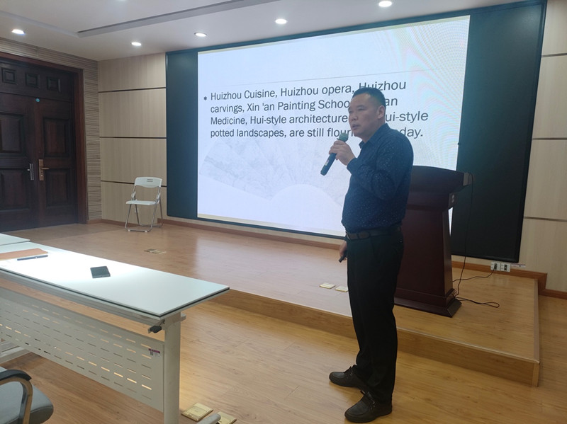 洪常春为志愿者们进行徽文化外宣方面的培训。他围绕外事工作中外宾关心关注的徽文化知识,结合具体实际案例,向志愿者们深刻剖析徽文化的丰富内涵及重要意义。培训内容既有宏观的整体把握,又有围观细致深描,深入浅出、内容丰富、重点突出, 具有较强的指导性和针对性。