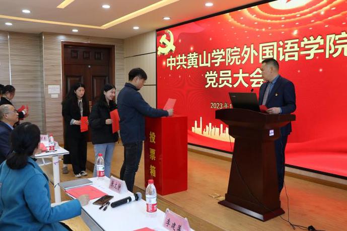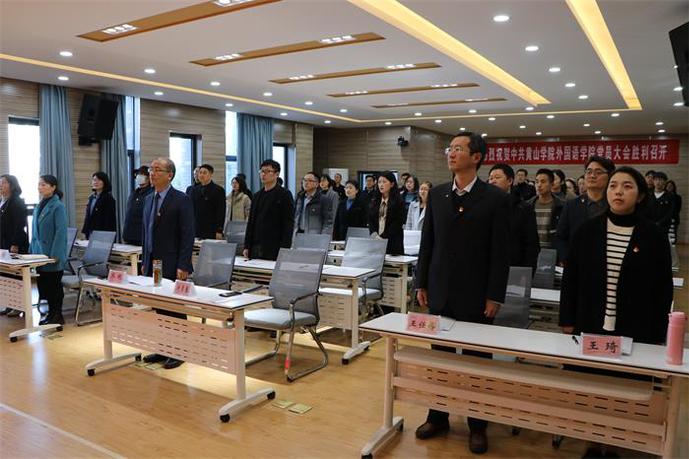 11月22日下午,中国共产党永利yl23411集团委员会换届选举党员大会在逸夫综合楼5306徽文化传播中心隆重举行。大会由院党委副书记、院长洪常春主持。大会在雄壮的国歌声中拉开帷幕。