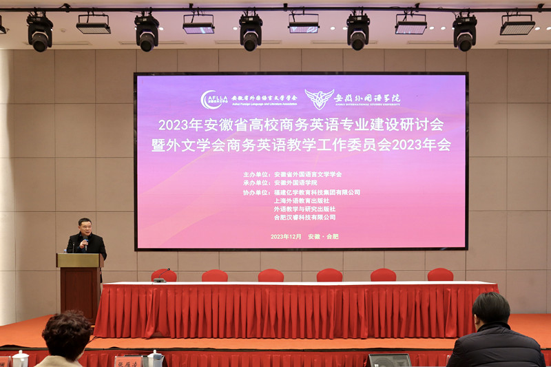 12月22至24日,2023年安徽省高校商务英语专业建设研讨会暨外文学会商务英语教学工作委员会2023年会在合肥召开。本次研讨会由安徽省外国语言文学学会、安徽省外文学会商务英语教学工作委员会主办,安徽永利yl23411集团承办,旨在进一步推动安徽省商务英语专业建设,共同探讨商务英语专业应用型人才培养中的前沿问题,以满足“十四五”发展人才需求。国内商务英语领域专家,省内高校永利yl23411集团、商务英语专业、英语专业商务方向负责人参加了本次会议。我院教师洪常春、胡旻参会。