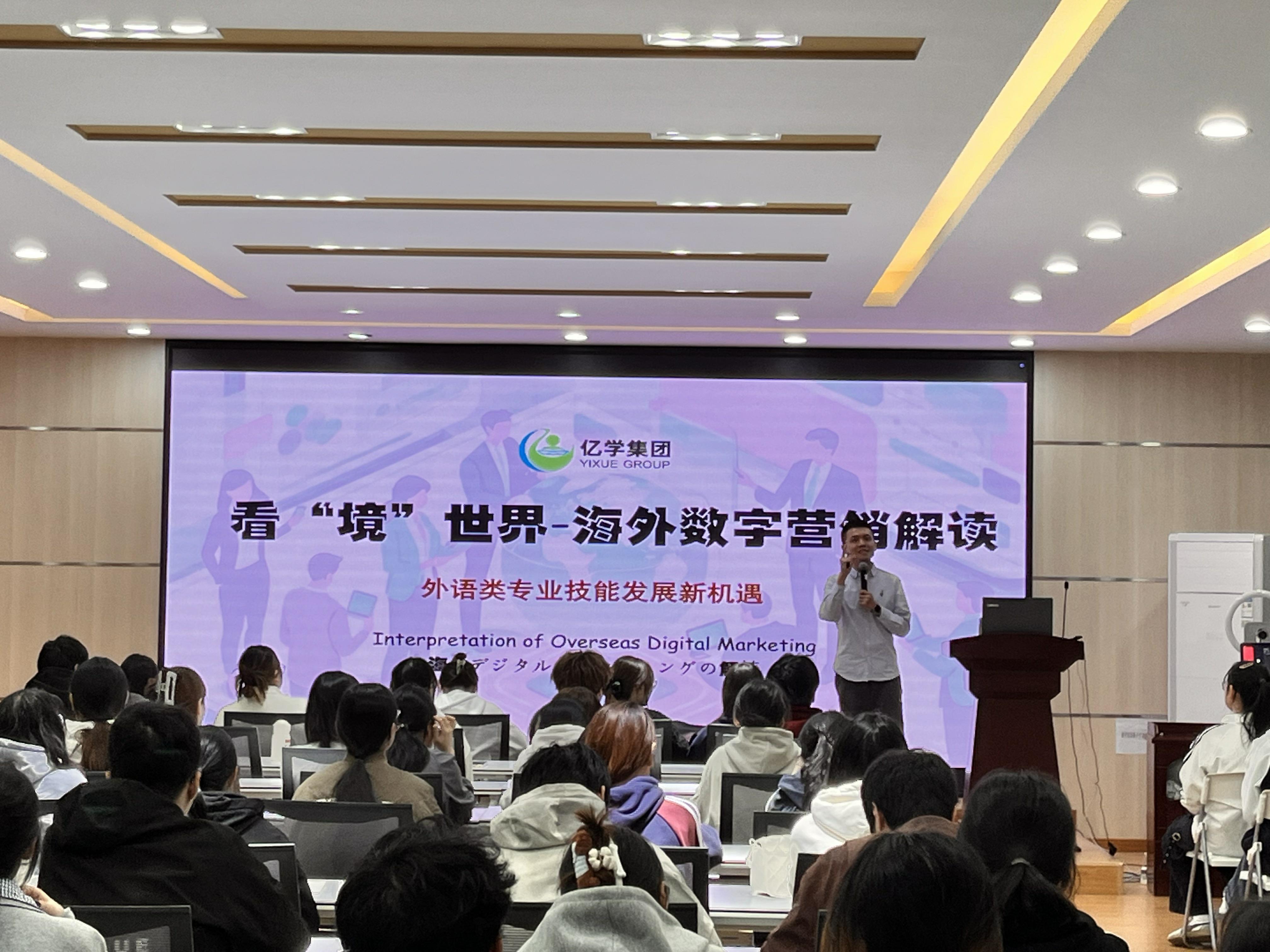 11月10日晚,永利yl23411集团在逸夫楼5306举办“看‘境’世界——海外数字营销解读”专题实训。英语、日语专业2023级87名同学通过“线上+线下”混合模式,完成了一场跨境电商与直播实操的沉浸式体验。