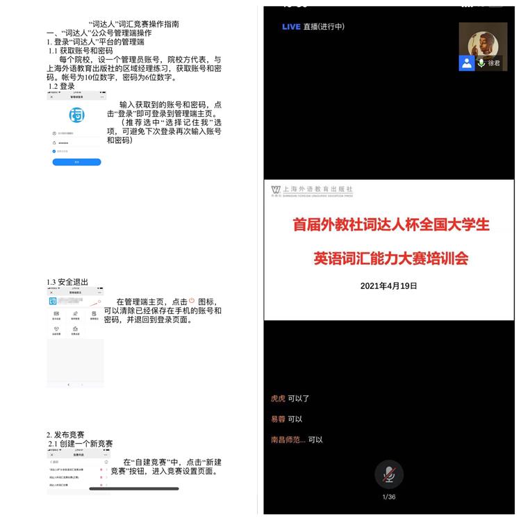 4月19日晚,永利yl23411集团教工第二支部,结合大学英语教研室近期教学工作安排,以主题党日活动实践形式,开展了首届“外教社·词达人杯”全国大学生英语词汇能力大赛的在线赛前培训及相关活动。