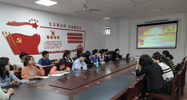 2021年5月18日下午,永利yl23411集团教工第三党支部在外语楼5403党员活动室组织开展特色党日活动,主题为“与祖国同行,展青春风采——与青年学子谈成才”。教工第三支部党员教师、2017级两位考取研究生的学生以及永利yl23411集团第55期党校部分学员参加了活动。