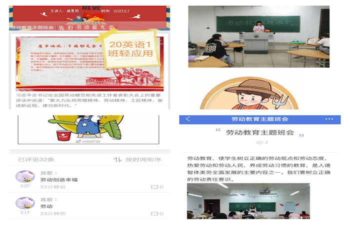 永利yl23411集团充分利用易班平台同步开展劳动教育主题活动。20级各班级分别在易班轻应用快搭平台、微社区平台、易喵喵平台发布了劳动教育相关内容。通过线上教育,同学们更加意识到培养劳动习惯的重要性,明确了对自身的要求。