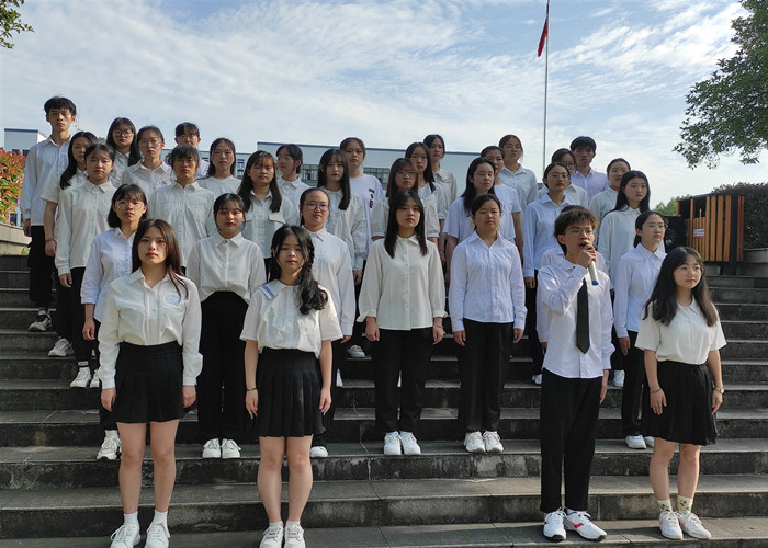 升旗仪式开始前,全体师生提前到达指定地点集合整队, 静待五星红旗的升起。七点整,鲜艳的五星红旗在英姿飒爽的国旗护卫队员的护送下,伴随着庄严的《义勇军进行曲》,冉冉升起,迎风飘扬,现场师生怀着对祖国的无限热爱,面向国旗行注目礼。升旗结束后,永利yl23411集团合唱队全体歌唱《不忘初心》,歌颂中国特色社会主义最美道路,引导同学们不忘初心牢记使命、向着第二个百年目标奋斗。