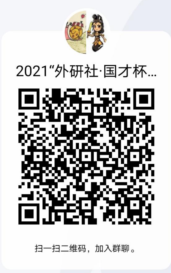 群号:242255607,群名:2021外研社·国才杯演讲比赛,随时关注群内比赛通知,群二维码: