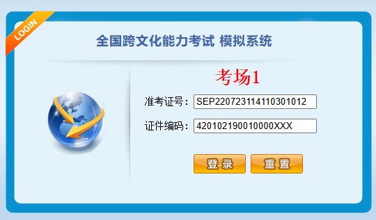 考生可复制http://112.74.57.43:8099/obt/exam 至网页端打开进行考试模拟。务必网页端操作,无需填写准考证号和证件编码,直接点击登录即可。(模拟操作和作答界面跟真实考试相同,但模拟答题时间未做限制。答案请参考《跨文化能力考试大纲》中的初级样卷,注意题目顺序不同,需参看原题。)