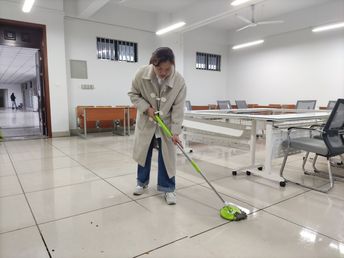 在本次活动中,各位党员同学自带清扫工具,对逸夫综合楼四楼区域进行认真细致的清扫。经过一个多小时的清洁打扫,该区域的卫生环境焕然一新。此次主题党日活动充分体现了“树旗帜、亮身份、做表率、展风采”的宗旨。