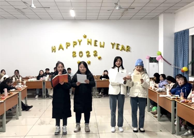 2021年12月30日晚,由2021级英语专升本2班举办的2022年元旦晚会在逸夫楼5501教室隆重举行,辅导员胡旻老师和同学们共同观看了本次班级元旦汇演。