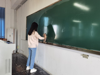 上午9点,志愿者们准时到达逸夫综合楼,负责人清点人数后,志愿者们对分配区域进行分工,对5502、5503、5504、5505、5506五间教室进行清扫。清扫完毕,由负责人进行卫生检查,确保每间教室达到卫生合格标准。