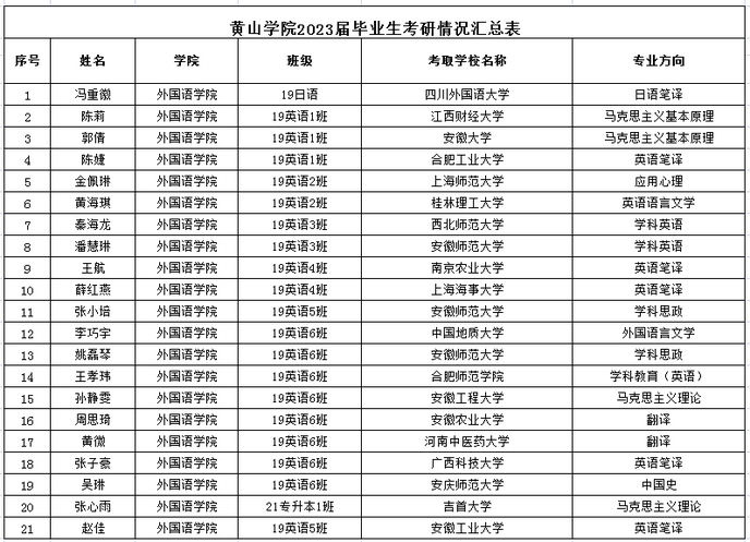 1 | 谭静雯 | 永利yl23411集团 | 18英语4班 | 云南大学 | 汉语国际教育 | 全日制 | 2 | 李思冉 | 永利yl23411集团 | 18英语4班 | 河海大学 | 社会工作 | 全日制 | 3 | 汪琳 | 永利yl23411集团 | 20英语专升本2班 | 安徽师范大学 | 社会学 | 全日制 | 4 | 张凯溪 | 永利yl23411集团 | 18英语2班 | 南京理工大学 | 英语笔译 | 全日制 | 5 | 李悦 | 永利yl23411集团 | 18英语3班 | 浙江师范大学 | 英语笔译 | 全日制 | 6 | 武晶晶 | 永利yl23411集团 | 18英语3班 | 安徽大学 | 汉语国际教育 | 全日制 | 7 | 王心悦 | 永利yl23411集团 | 18日语班 | 南京航空航天大学 | 社会工作 | 全日制 | 8 | 曹语鸣 | 永利yl23411集团 | 18日语班 | 大连外国语大学 | 日语笔译 | 全日制 | 9 | 赵欣蕊 | 永利yl23411集团 | 18日语班 | 香港城市大学 | 国际研究 | 全日制 |
