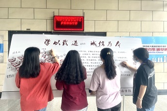 5月28日下午,永利yl23411集团在逸夫综合楼二楼大厅组织开展“学以载道,诚信为本”主题诚信考试签名活动。活动伊始,同学们郑重有序地在诚信展板上签名,并作出“拒绝作弊、诚信考试”的庄严承诺。