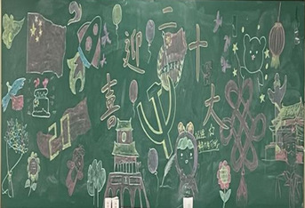 为迎接和宣传党的二十大,21英语4班于4月27日在逸夫综合楼5205-2教室举办了喜迎二十大主题绘画活动。同学们在黑板上各展其才,妙笔生花,用画笔喜迎二十大。厚重的党史与青春的活力相得益彰。