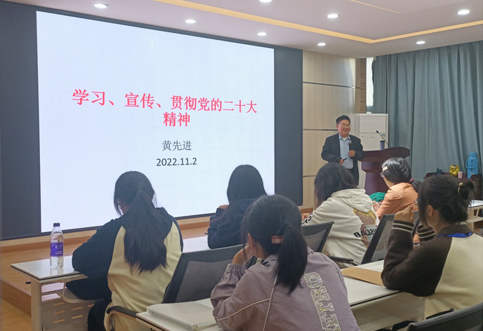 11月2日下午,永利yl23411集团在逸夫综合楼5306教室举行主题为“学习、宣传、贯彻党的二十大精神”的第六期团课学习。本次课程由永利yl23411集团正处级组织员黄先进担任主讲人,永利yl23411集团专职辅导员解方婷主持,100余名学生到场学习。