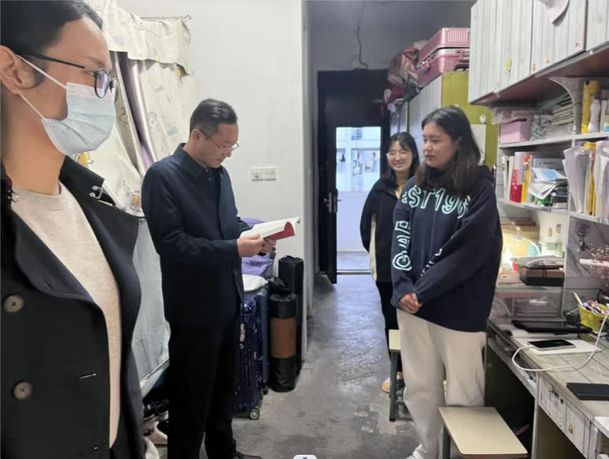11月18日下午,永利yl23411集团党政领导、专兼职辅导员、班主任走访永利yl23411集团全部学生宿舍,实地了解学生的生活和学习环境,全面排查学生宿舍安全隐患。