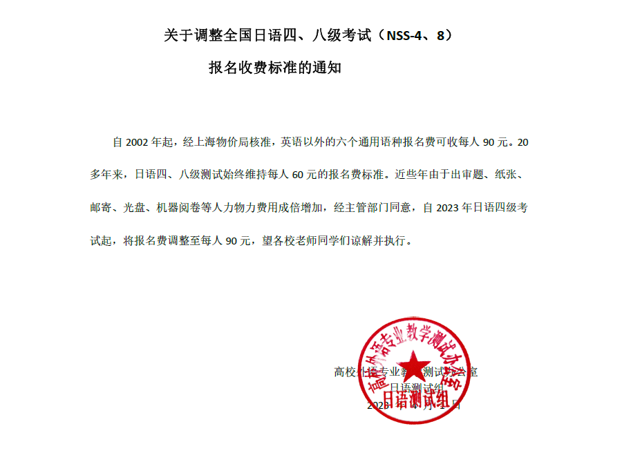 2023年高等学校日语专业基础阶段统测(NSS-4),定于2023年6月24日(星期六)上午8:30开始,在各自院校组织进行。因端午节放假调休星期日上班,所以这次只能在星期六考试。