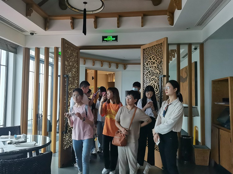 首先,同学们分组分批先后前往黄山悦榕庄酒店和黄山涵田度假酒店。在酒店专业人员的带领下,师生共同参观了酒店的客房、餐厅、健身房、儿童娱乐区域、宴会厅等。