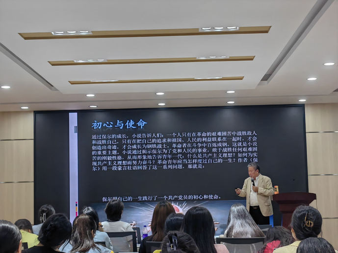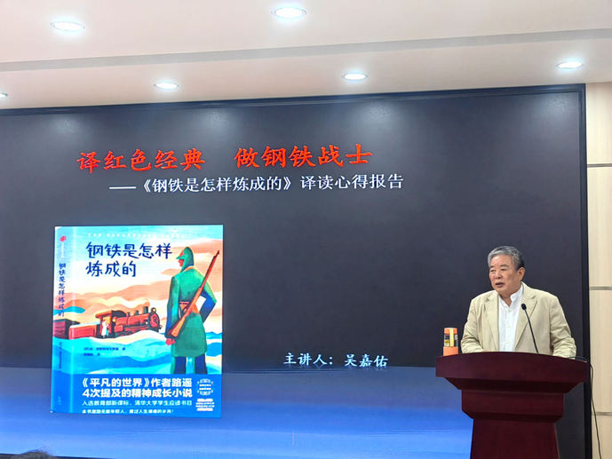 报告会上,吴嘉佑分享了自己与红色经典《钢铁是怎样炼成的》的渊源,通过翻译经典、阐释经典、走进经典,感悟“保尔精神”,锤炼意志品质。他激励学生以保尔为榜样,学习其钢铁般的生命意志、永不言败的奋斗精神和追求大无畏的献身精神,勇敢克服困难,不断前行。