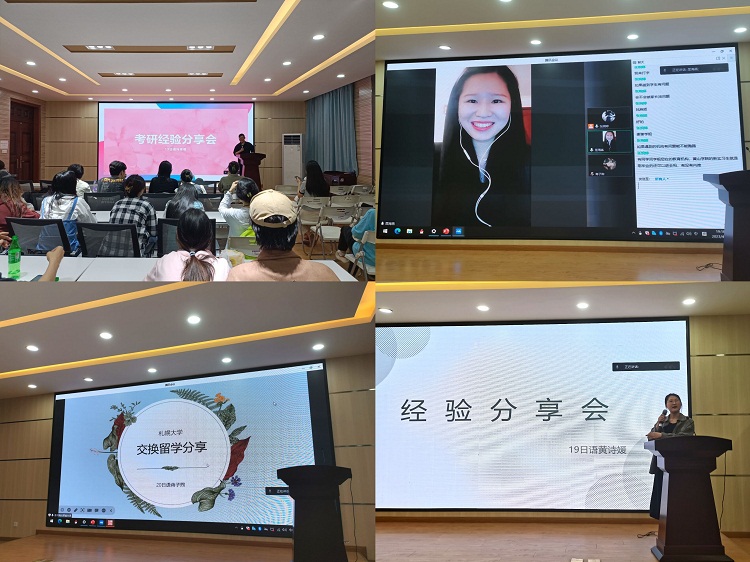 会上,永利yl23411集团日语专业18级毕业生屈海燕,以线上连线的方式,向在场学生简述了高中日语教师就业前景、薪资待遇、工作内容等方面信息。日语专业19级学生黄诗媛从笔试和面试两方面内容,分享了自己备考教师资格证考试的经验,勉励各位学弟学妹要保持良好的心态。日语专业19级学生冯重徽,以复试第一的成绩被四川外国语大学录取。此次交流会上,他围绕日语笔译方向考研,从备考时间、相关科目备考资料以及注意事项三个方面进行了简要概括。最后,通过现场连线与目前在日本札幌大学交换留学的20级日语专业学生蒋子煦就赴日留学的手续流程以及在日的学习生活进行了经验分享。