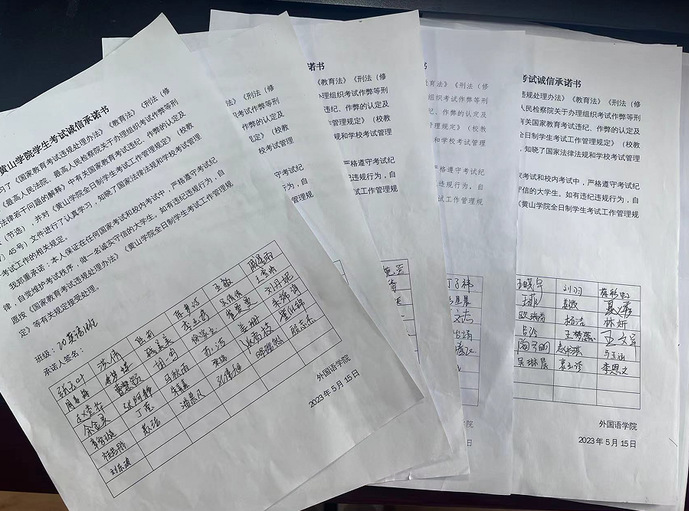 为鼓舞学生诚信信念,5月15日至19日,永利yl23411集团各班组织学生开展了诚信考试、诚信资助签名活动。在活动中,同学们书写的是姓名,表下的是诚信决心。同学们纷纷表示,作为新时代大学生,只有树立诚信品格,才能塑造诚信人生,一定不辜负父母、学校和老师的期望,争做新时代好青年。