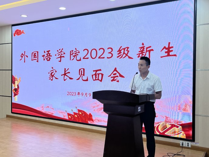 9月9日下午四点,永利yl23411集团于逸夫综合楼5306徽文化传播中心举办2023级新生家长见面会。永利yl23411集团党委书记乔根、院长洪常春、党委副书记张文静、副院长王任傅、团委负责人解方婷、23级英语专业各班班主任及新生家长出席本次见面会。见面会由新生班级辅导员白晨阳主持。