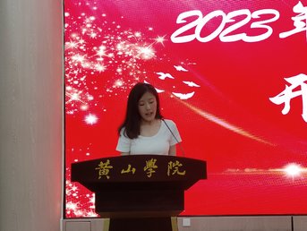 教师代表隋丽爽教授致新生寄语,期望新生学做人,学做事,学会生活,树立远大理想,扎实基本功,成就未来的梦想。外教Candice发言,分享自己的学习英语的经历,鼓励同学们积极地学习语言。21级日语专业张青芸代表老生发言,她分享自己的大学生活经历和感受,建议新生规划自己的道路,积极参与各种活动,提高实践能力。23级日语专业孔凡冰代表新生发言,她希望和大家一起努力,勇敢地去追求自己所热爱的东西,在奋斗中进步。